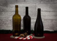 Gällande bild nr. 8 så är det vinflaskor med avskuren botten som står på ett underlag gjutet i ett yoghurtlock, av betong. Vinflaskorna ger supermysigt sken i vintermörkret. (125 kr/st)